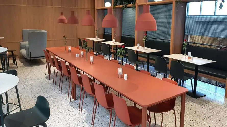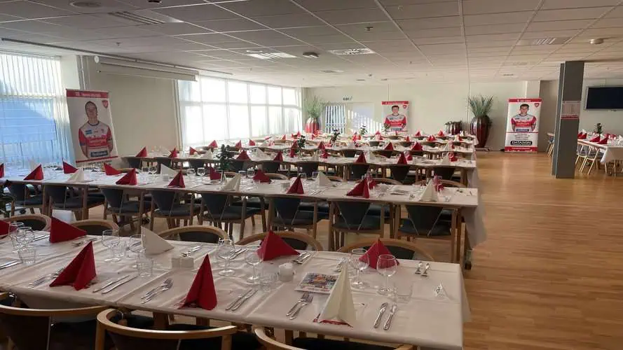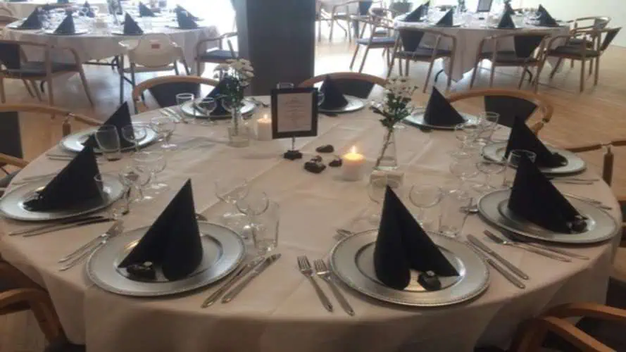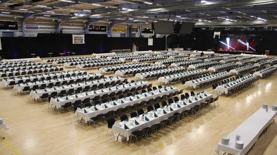 Vi kan tilbyder helt op til 1.800 kuverter, så du kan bringe dit store selskab til os, så finder vi den rette bordopstilling og antallet af kuverter til Jer.